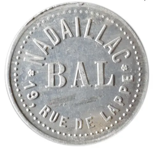 | Obverse lettering | BAL NADAILLAC 19, RUE DE LAPPE |