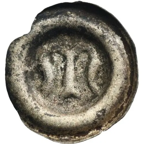 | Obverse description | Capital letter M, above it minuscule v, similar in form to Π |