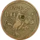 Obverse description Cockerel stands to right, holding flower.