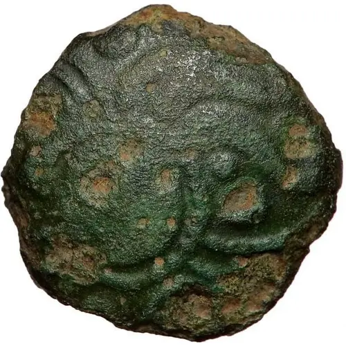| Obverse description | Remnant of a stylized human head on the left, flanked by two globules. |