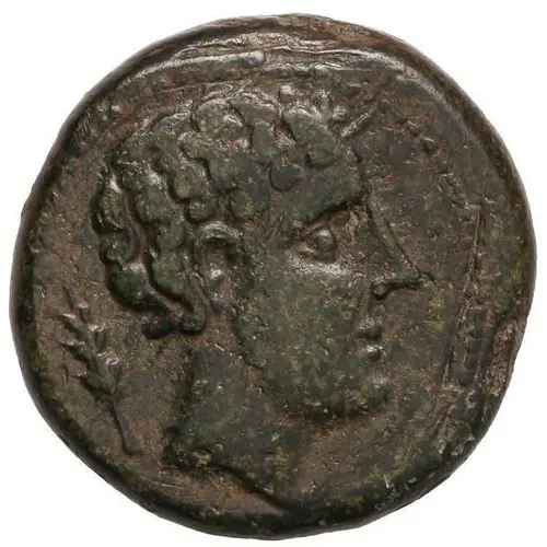 | توضیحات روی سکه | Male head with mantle facing right, palm leaf behind. |