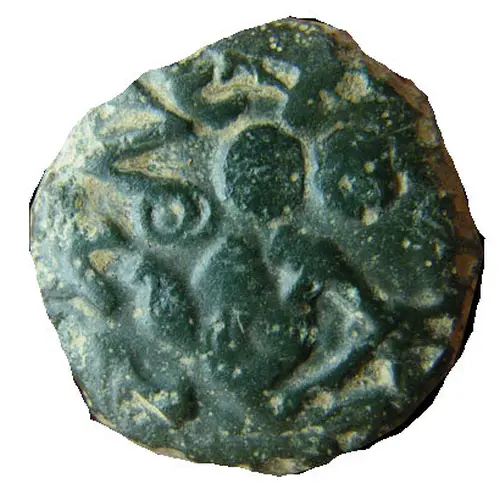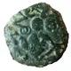 | Obverse description | Stylized human head facing left, stylized hair; in front of the face, two superimposed pointed rings. |