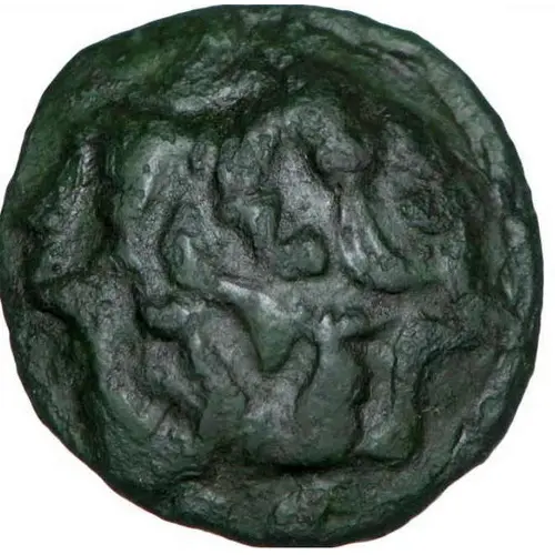 | Reversbeschreibung | Free horse galloping left; above the horse`s croup, a small boar ensign on the right; between the legs of the horse, little bird. |