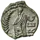 Beschrijving keerzijde Figure (Demos) standing left, wearing a toga; in front of him, a large palm.