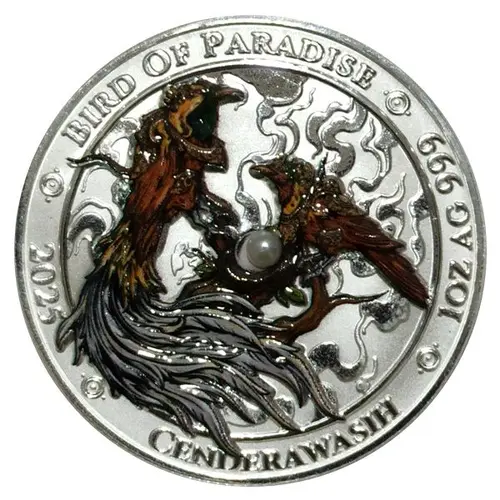 | Obverse lettering | 2025 BIRD OF PARADISE 1 OZ AG 999 CENDRAWASIH |