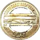 `SOUTH COAST AREA TRANSIT` curved on top rim. Bus on middle strip, with small words `BUS` underneath left and `TOKEN` right. SCAT underneath curved upward. |