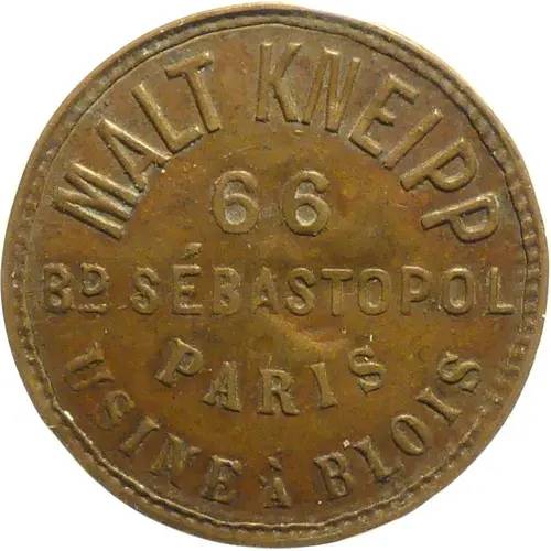 | Obverse lettering | MALT KNEIP 66 BD SÉBASTOPOL PARIS USINE À BLOIS |