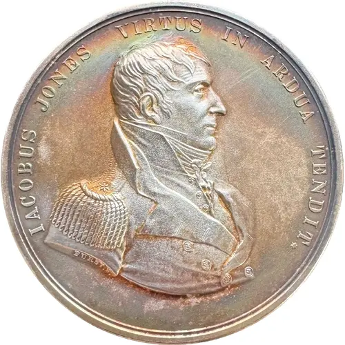 | Opis líce | IACOBUS JONES VIRTUS IN ARDUA TENDIT FURST. F. |
