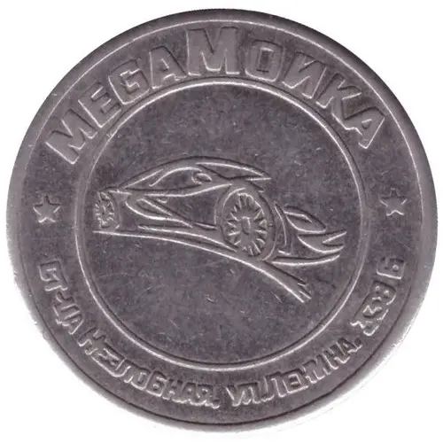 | Obverse lettering | MEGA МОЙКА *СТ-ЦА НЕЗЛОБНАЯ УЛ ЛЕНИНА . 338 Б (Translation: Mega Wash Nezlobnaya village Lenina 338B) |