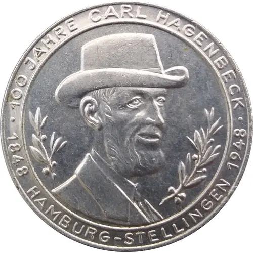| Obverse lettering | 100 JAHRE CARL HAGENBECK 1848 HAMBURG-STELLINGEN 1948 |