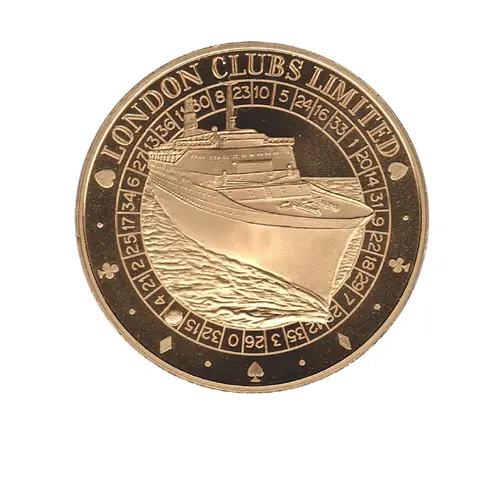 | Mô tả mặt trước | Queen Elizabeth II ocean cruise liner in center with roulette wheel around the perifery and playing card symbols on the lower half |