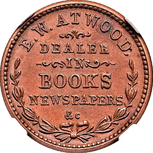 | Obverse lettering | E.W. ATWOOD DEALER IN BOOKS NEWPAPERS &c |