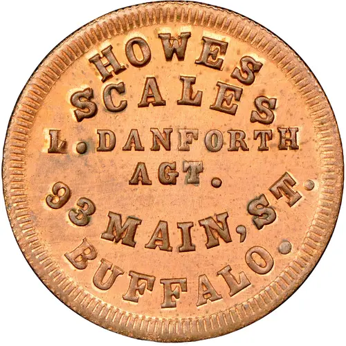 | Obverse lettering | HOWES SCALES L. DANFORTH AGT. 93 MAIN, ST. BUFFALO. |