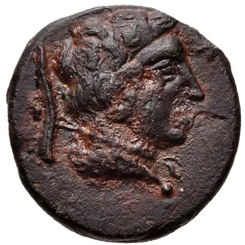 | Description de l’avers | Bust of young Hermes facing right, cloak tied at neck and a petasos slung behind neck |