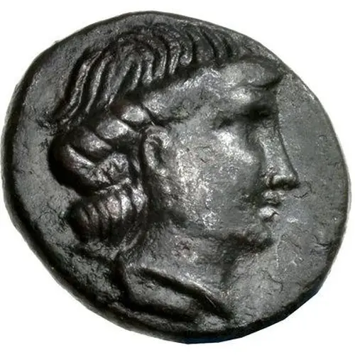 | Obverse description | Nymph’s head right, hair rolled and hanging loose behind. |