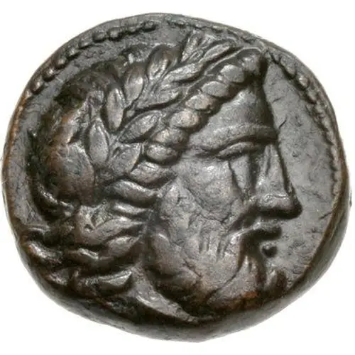| Obverse description | Laureate and bearded head of Zeus right, border of dots. |