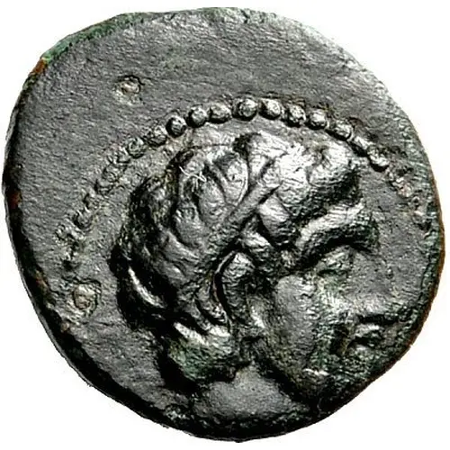 | 表面の説明 | Youthful head to right, wearing taenia (Apollo?) |