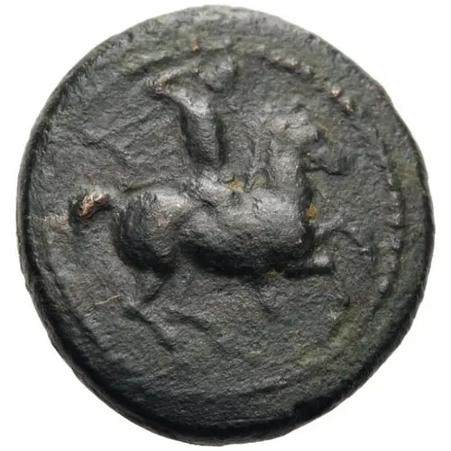 | Obverse description | Helmeted horseman to right, raising spear to strike at unseen adversary |
