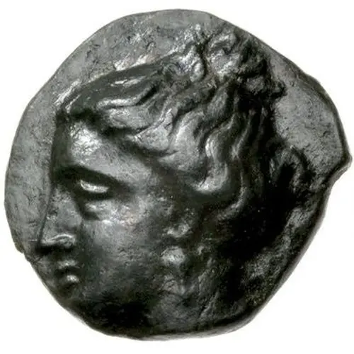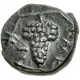 | Description de l’avers | Head of nymph left, wearing pendant earring in the form of a small bunch of grapes, her hair rolled up into a bun at the top of her head. |