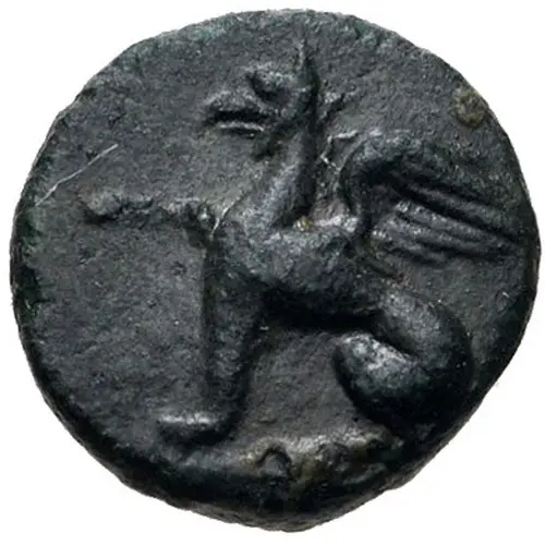 Technical/Grading: Weighing a mere 0.98 grams, this chalkon presents inherent challenges for strike quality and detail preservation. High-points, such as a griffin's head or wing details, are often the first to show wear or be weakly struck. Due to rapid production and less meticulous standards for bronze, irregular flans, off-center strikes, and areas of flatness are common. A well-centered strike with clear rendering of the primary motif, despite its small scale, signifies superior technical quality for this utilitarian denomination.