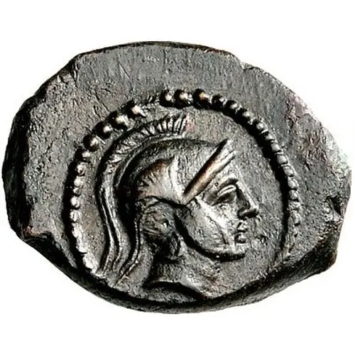 | Obverse description | Youthful male head (Ares?) in crested helmet to right, earflaps down. |