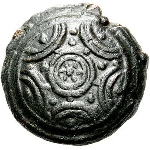 | Description de l’avers | Round shield of Macedonian form, ornamented with a star at the center and crescents at the edge |