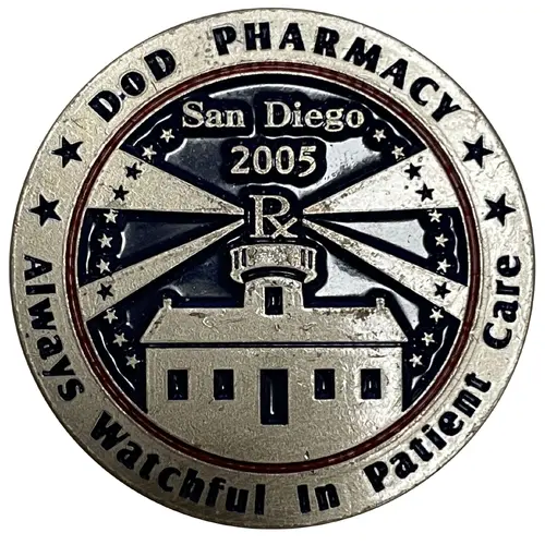 | Obverse lettering | DoD PHARMACY San Diego 2005 Rx Always Watchful In Patient Care |