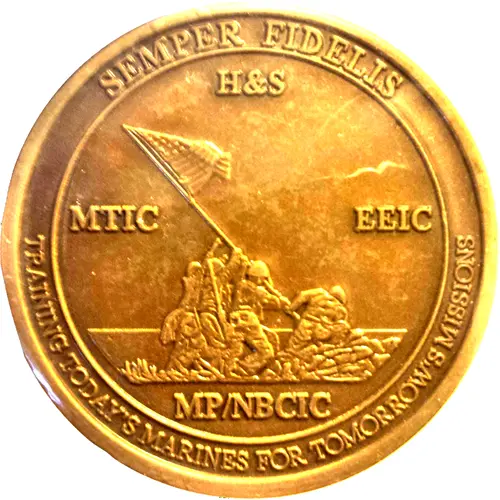 | Obverse lettering | SEMPER FIDELIS TRAINING TODAY`S MARINES FOR TOMORROW`SMISSIONS H&S MTIC EEIC MP/NBCIC |
