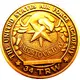 Eagle over star on shield, text around outside and on shield, serial number stamped on raised strip below shield. |