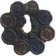 | Reverse description | Eight orbs with single Chinese character around center hole, poetic verse. |
