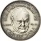 Winston Churchill facing right, text in Spanish and English: name of the series above, person name below, country on sides |