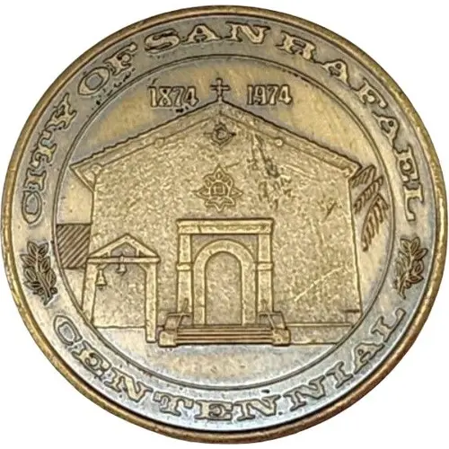 | Obverse lettering | CITY OF SAN RAFAEL 1874-1974 CENTENNIAL (Translation: Mission of Saint Rafael the Archangel) |