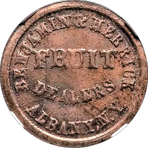 | Obverse lettering | BENJAMIN & HERRICK FRUIT DEALERS ALBANY, NY |