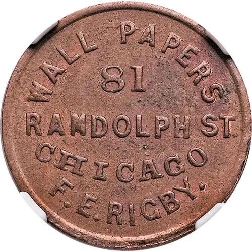 | Obverse lettering | WALL PAPERS 81 RANDOLPH ST CHICAGO F.E. RIGBY. |