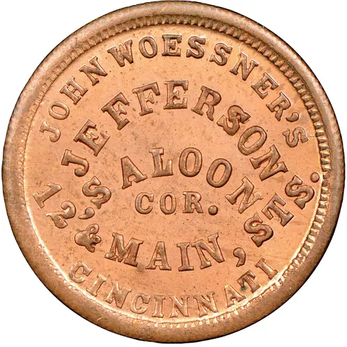 | Opschrift voorzijde | JOHN WOESSNER`S JEFFERSON`S SALOON COR. 12` & MAIN, STS. CINCINNATI |