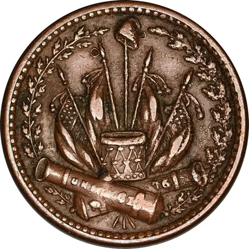 | Obverse description | Four flags and a spear with liberty cap behind drum on crossed canon in wreath |