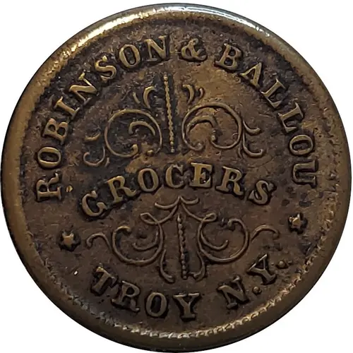 | 正面铭文 | ROBINSON & BALLOU GROCERS TROY N.Y. |