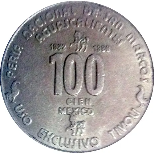 | Obverse lettering | Feria Nacional de San Marcos Aguascalientes 1982-1986 100 CIEN MEXICO uso exclusivo Tivoli |