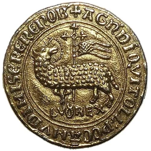 | Obverse lettering | + AGN DI QVI TOLL` PECA [MIS]ERERE NOB LVd REX |