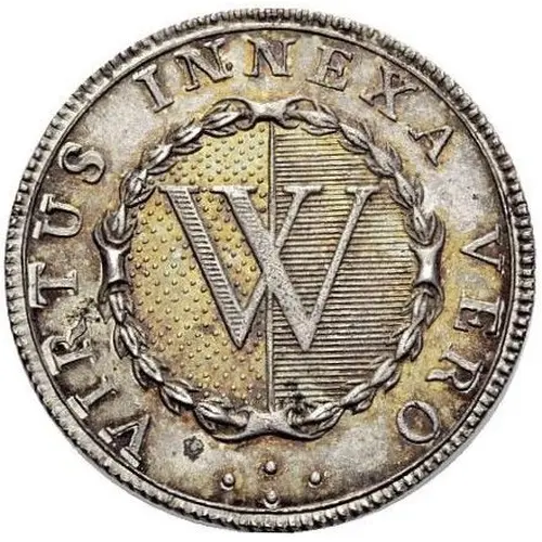 | Descrizione del dritto | Coat of Arms of Vevey surrounded by a laurel wreath. Crossed oak branches below. |