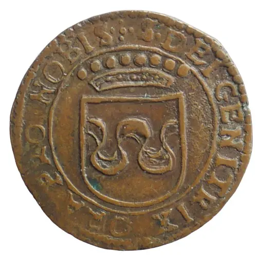 Obverse description Crowned Ecu with the Groesbeeck coat of arms in a grénétis.