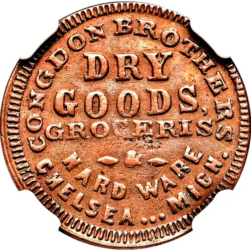 | Obverse lettering | CONGDON BROTHERS DRY GOODS GROCERIS HARWARE CHELSEA MICH |