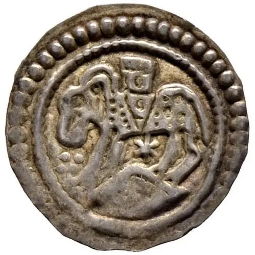 | Description de l’avers | Above a pitched roof is a ram jumping to the left with a turret on his back, in front of him are four dots. Between the rams legs a six-pointed star. |