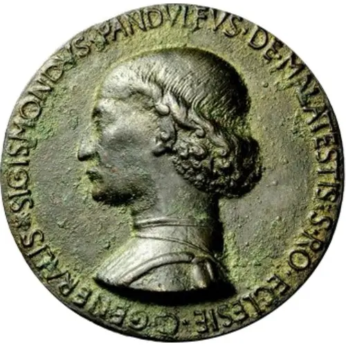 | Obverse lettering | SIGISMONDVS PANDVLFVS DE MALATESTIS S RO ECLESIE C GENERALIS * |