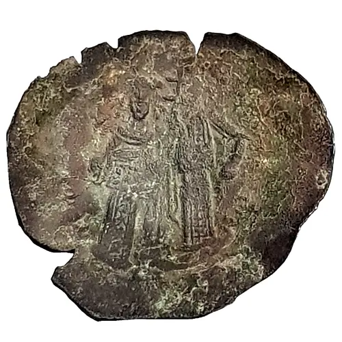 | Obverse description | Two figures standing facing,king in imperial attire on left, standing with St Constantine,on right, holding double cross banner together.St. Constantine holds labrarum sceptre in left hand. |