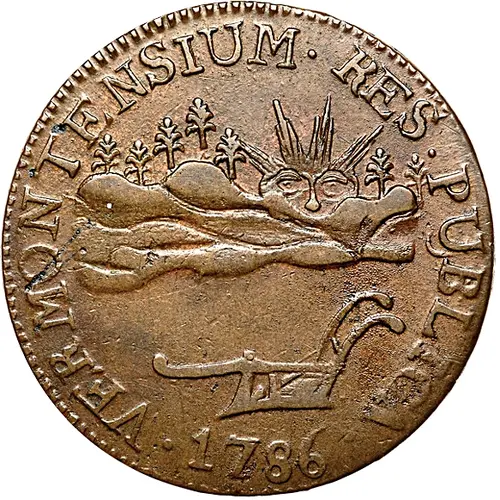 Ön yüz açıklaması Plow at bottom and the sun rising over the Green Mountains. The Latin motto encircling.