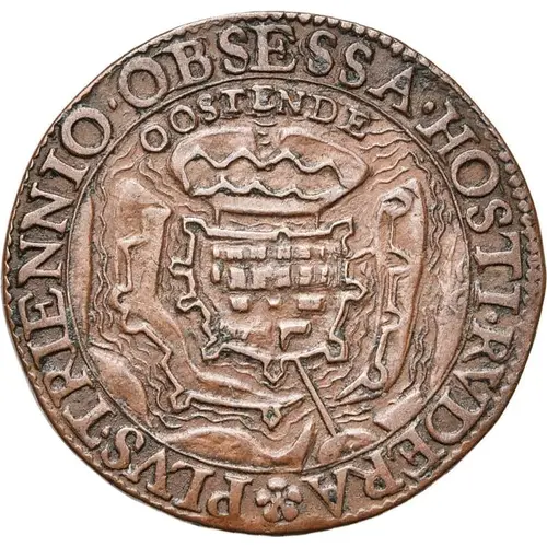 | Opschrift voorzijde | PLVS · TRIENNIO · OBSESSA HOSTI · RVDERA❀ OOSTENDE |
