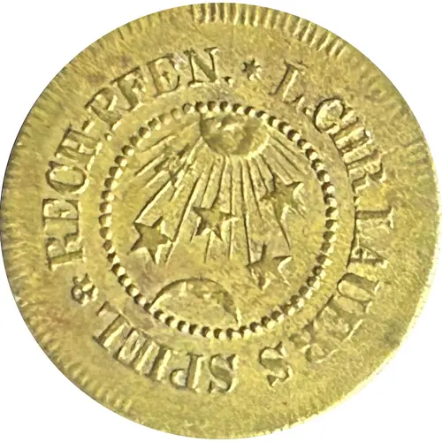 | Obverse lettering | L. CHR. LAUERS SPIEL & RECH-PFEN. * (Translation: Ludwig Christian Lauer Game and Counter Token) |