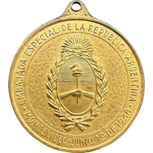 | Obverse lettering | EMBAJADA ESPECIAL DE LA REPUBLICA ARGENTINA · MONTEVIDEO-JUNIO 19 DE 1938 · GOTUZZO Y PIANA |