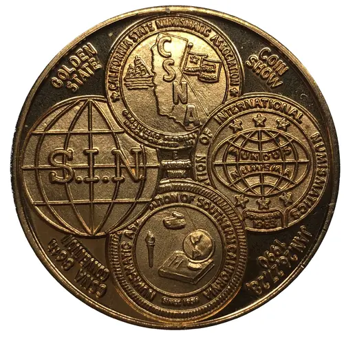 | Reverse lettering | *CALIFORNIA STATE NUMISMATIC ASSOCIATION* ORGANIZED FEBRUARY 22, 1947 INCORPORATED JUNE 2, 1961 |
